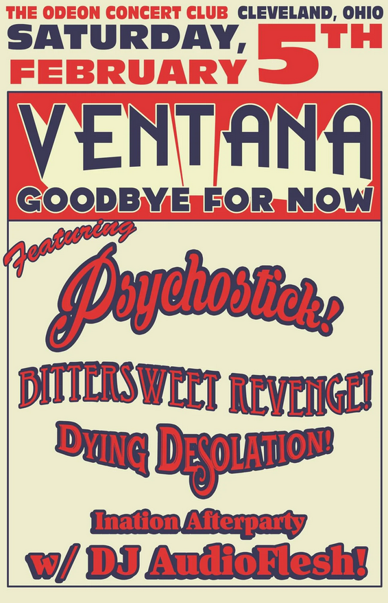Lineup: Ventana, Psychostick, Bittersweet Revenge, Dying Desolation, & DJ Audioflesh