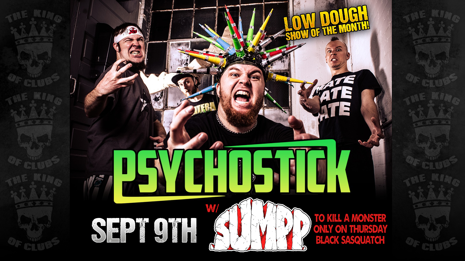 Lineup: PSYCHOSTICK, SUMPP, To KIll A Monster, Only on Thursday, & Black Sasquatch