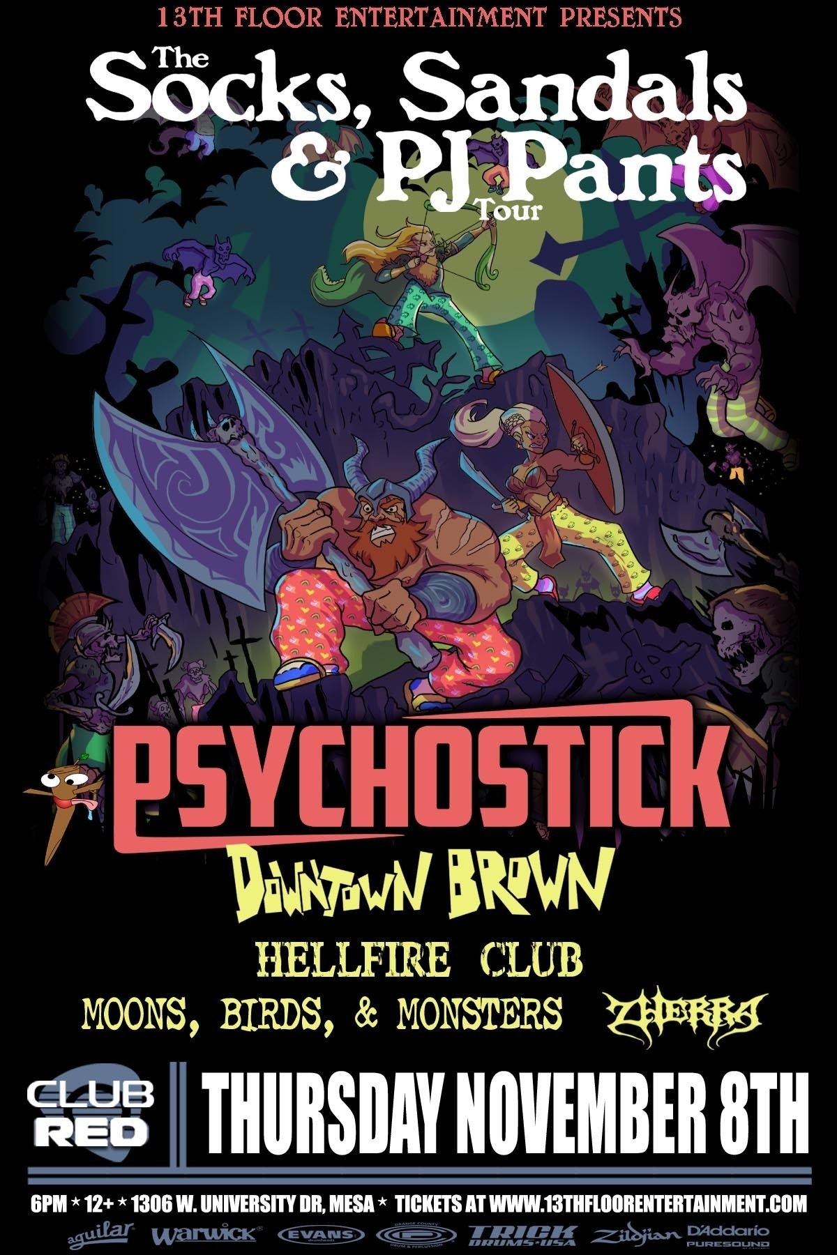 Lineup: PSYCHOSTICK, Rex Viper, Professor Shyguy, Super Monster Party, and Tiko!